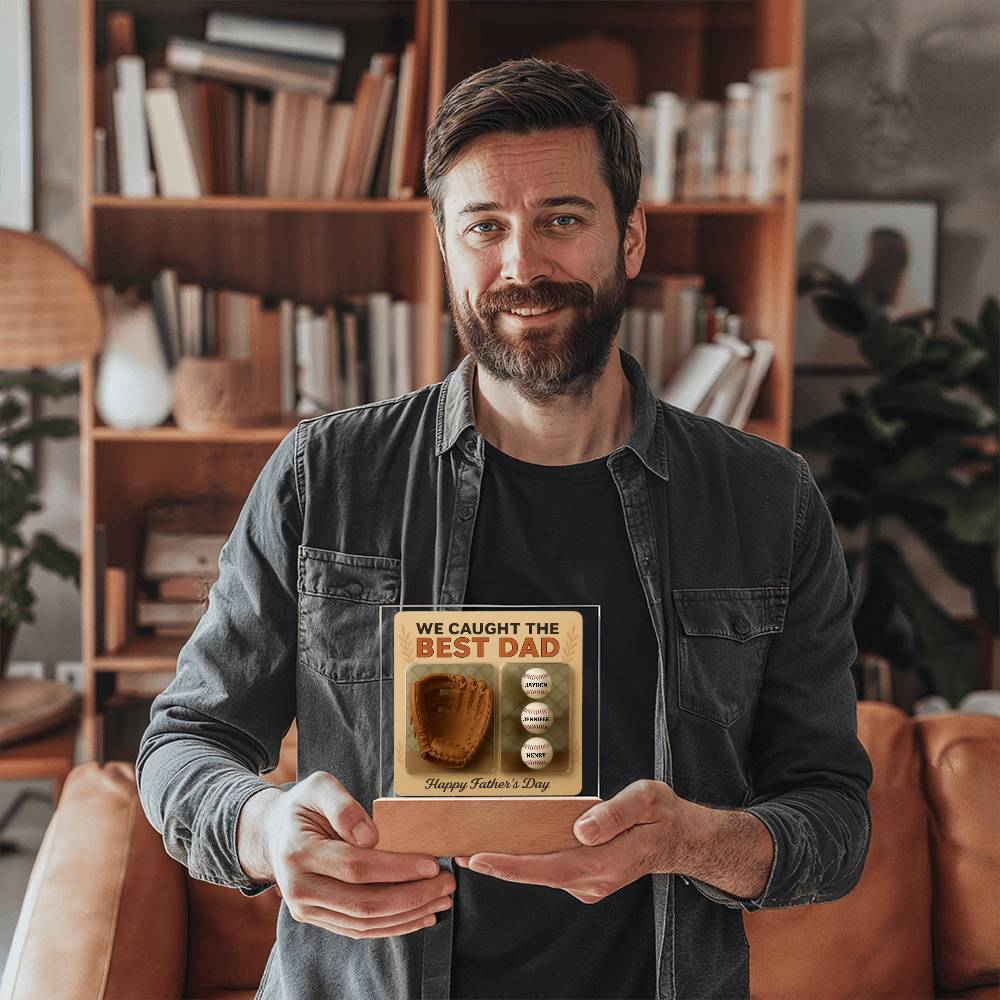 We Caught the Best Dad | Personalized Baseball Glove Acrylic Plaque